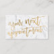Typographie d'écriture de feuille d'or moderne et élégante en marbre blanc avec votre prochain rendez-vous écrit dans une calligraphie d'écriture moderne et élégante. Idéal pour le salon de beauté, le coiffeur et le maquillage.