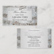 Business card with a music theme featuring an elegant grey damask design with stylized métallc musical notes. On the back is space for appointments (optional).