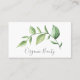 Carte de rendez-vous Rustic Beauty Salon avec un design simple avec une aquarelle verte peinte avec de grands feuilles et votre nom d'entreprise dans une police script. Cet élégant design botanique est idéal pour un maquilleur, coiffeur, salon de beauté, salon de ongles, spa, massothérapeute et bien plus encore.