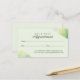 Belle et élégante carte de rendez-vous de libellules, avec notre illustration de libellules d'aquarelle verte imprimée à la main. Un arrière - plan vert clair apporte une touche moderne et douce. Personnalisez avec le nom de l'entreprise. La fonction inverse comme le rappel de rendez-vous informations qui a été conçu dans un style propre et minimal avec des accents de trait d'aquarelle verte artistique qui complètent magnifiquement l'illustration de libellule avant. Personnalisé avec les coordonnées. Toutes les oeuvres contenues dans notre élégante carte de rendez-vous en libellule d'aquarelle verte sont des oeuvres originales dessinées à la main par Moodthology. Vous pouvez customiser la couleur, la police et la mise en page de l'arrière - plan pour vos préférences personnelles.