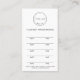 Carte de rendez-vous moderne, simple, noir et blanc, minimaliste avec place pour votre logo et icônes de médias sociaux sur le dos.