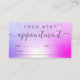 A stylish pink and purple faux glitter ombre layout with a metallic shine effect, created for beauty pros who want something modern and eye-catching. The script headline stands out beautifully next to the clean details section, giving clients an easy way to remember their next visit. Every detail can be updated in minutes, making it a simple and polished choice for makeup artists, hair stylists, salons, lash techs, nail techs, and brow artists.
