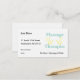 Un design mignon et intelligent avec des empreintes à la main et les mots "Massage Therapist" en jaune et vert tendre. C'est le carte de visite parfait pour votre pratique de massothérapie, et nous offrons des cartes de voeux, des mailers, des boutons et plus avec le même design. De nombreux choix de papier sont également disponibles.