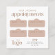 Modern business appointment reminder cards with bohemian arch background and terracotta color scheme - you can edit all colors to suit your brand aesthetic. The modern serif font reads 'Appointment Reminder', with space for your business details and logo. There are 4 date and time slots included, edit using the design tool to add / remove the slots as needed. This minimal boho booking reminder card can suit your lash salon, nails spa, hair stylist or makeup studio, boutique and more!