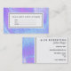 Un design à la mode pour une carte de rendez-vous avec une photo de lilas irisé, d'aqua et de tissu rose pâle, conçu pour ressembler à une sirène.