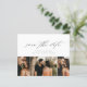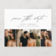 Une carte de rendez-vous photo à budget minimal avec une belle calligraphie script, 3 photos et un texte minimal sur le devant. Le verso comprend le site web du mariage pour plus d'informations. Cliquez sur le bouton modifier pour personnaliser ce design.