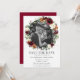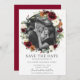 Mettez en valeur votre photo de pré-mariage avec cette carte photo de rendez-vous chic bohème. Avec une belle aquarelle de couleur bourgogne, orange brûlé / rouille, et une couronne florale ivoire avec feuillage. Personnalisez-la facilement et rapidement avec vos détails, il suffit d'appuyer sur le bouton personnaliser pour réorganiser et formater le style et l'emplacement du texte.