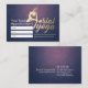 Modèle de carte d'affaires - Elégant violet et or Pose de Yoga Aérien et Typographie manuscrite de script sur Arrière - plan de texture violette.