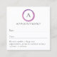 Modern business appointment card featuring a simple yet professional design with your monogram inside of a pink and purple circle.