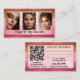 Un carte de visite de rendez-vous élégant avec 3 photos de votre choix (en option) encadrées par un design artistique aux tons rose chic et terre chaude. Au verso se trouve l'espace pour les rendez-vous, ainsi que votre code QR personnalisé. Un beau carte de visite pour esthéticienne ou maquilleur.