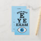 Ophtalmologue, optométristes et opticiens - rappelez vos patients de soin d'oeil quand il est temps pour leur examen de la vue annuel avec ce modèle de carte de rendez-vous d'amusement. La carte montre une conception de diagramme d'oeil de snellen qui indique : Votre prochain examen de la vue. Personnaliser avec votre nom de bureau, téléphone d'adresse et site Web.