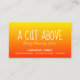 Carte de rendez-vous d'affaires à l'ombre jaune vif et orange qui est parfaite pour les salons de beauté ou autres affaires. Il y a cinq espaces entre l'adresse et les coordonnées.