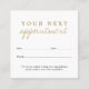 Carte de rendez-vous simple et élégante pour salon de beauté (cheveux, maquillage, ongle). Design élégant avec arrière - plan blanc clair et texte de couleur or.