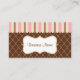 Cette carte de rendez-vous d'affaires a un auvent rayé rose qui ajoute un style rétro. Customisez ce carte de visite pour répondre à vos besoins. Ajoutez ou supprimez des informations, changez le style de police, la taille de police, etc...Le design est de l'art original. Utilisez ce carte de visite élégant pour un spa, salon, petite entreprise, décoration maison, fleuriste, glacier, pâtisserie, chocolat gourmet, salon d'ongles, auberge, station, cosmétologiste, préscolaire, coiffeur, garde d'enfants, garderie, boulangerie, etc...