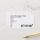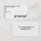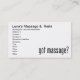 Façonné après cette publicité très populaire, nous avons ce design super mignon "Get Massage?" sur des tonnes de produits pour que vous puissiez l'utiliser sur vos cartes de visite de massage, de cartes de remerciement, ou de donner comme cadeaux clients. Disponible en noir ou blanc cassé.