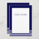 Les rayures bleues marine et blanches ornent la carte de renvoi qui contient les directions du mariage. Le motif permet de changer la couleur de fond. N'oubliez pas de régler également les couleurs de forme et de police. Pour obtenir de l'aide, veuillez contacter KBMD3signs.