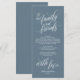 Partagez l'amour et montrez votre appréciation à vos invités, lorsqu'ils s'assoient à leur place et lisent cette carte de remerciement personnalisée charmante. C'est une merveilleuse façon de commencer la célébration de votre jour spécial ! Cette carte est sûre de donner le ton pour un événement inoubliable. La carte de remerciement présente un design moderne, un thème bleu poussiéreux foncé, ajoutant une touche d'élégance intemporelle à votre célébration.
