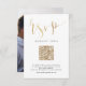 Script RSVP écrit à la main dans la couleur fausse feuille d'or, élégante et élégante, grande moderne simple et personnalisée mariage QR code cartes RSVP. Voir toutes les pièces correspondantes dans la collection.