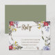 Un beau design floral/wildflower boho sur un fond gris clair, et un fond vert sauge complémentaire. Utilisez cette carte RSVP coordonnée pour encourager vos invités à répondre rapidement ! Modifiez les champs de texte disponibles en fonction de vos besoins, pour créer la parfaite suite de mariage. D'autres articles et papeterie de cette collection, tels que des autocollants de faveur, une carte d'information, des numéros de table, etc. ! Parfait pour les mariages et les fêtes/événements à tout moment de l'année, mais particulièrement adapté au printemps et à l'été. Un design très élégant.
