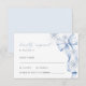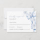 Une carte de réponse RSVP élégante inspirée de l'hiver, conçue pour une célébration de douche de mariée. Cette carte de réponse raffinée présente un nœud bleu poussiéreux doux avec des détails floraux délicats, créant un look intemporel et romantique. Parfaite pour coordonner avec la papeterie de douche de mariée sur le thème de l'hiver, ce design allie une élégance classique à un fond blanc épuré, ce qui en fait un choix idéal pour les célébrations formelles et saisonnières. Entièrement personnalisable avec les noms des invités et les détails de présence.