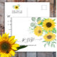 La conception présente un bouquet de tournesols jaunes à l'aquarelle, d'eucalyptus et d'autres feuilles et brindilles sur fond noir.