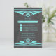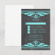 Elégante et chic Deco Chalkboard Mariage Response Card avec une texture de tableau à la mode et une paire de bordures tourbillonnantes art déco turquoise. Cette jolie carte RSVP est parfaite pour un mariage art déco des années 1920. Facile à customiser, il suffit d'ajouter les détails de votre mariage. Cliquez sur "Customiser" pour trouver d'autres options de personnalisation.