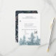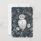 Carte de réponse RSVP avec typographie classique et aquarelle éphémère représentant un pin de la forêt et une chouette. L'autre côté est une grande chouette aquarelle saupoudrée de verdure botanique florale sur un fond bleu marine foncé. Articles assortis à cette carte de réponse.