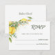 Cette carte de réponse de mariage présente un design frais aquarelle botanique avec des citrons et de la verdure d'eucalyptus.