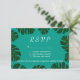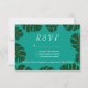 Cartes de réponse au mariage de la plage de Monstera palm RSVP. Donnez à vos invités un moyen de répondre s'ils viennent à votre élégant mariage de plage. Cette conception va de pair avec des invitations de mariage similaires. Qualité du texte et du papier personnalisable. Thème tropical pour le mariage d'été ou de destination. La palette de couleurs peut être modifiée. Arrière - plan bleu turquoise.