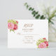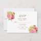 De belles pivoines et hydrangeas ornent cette charmante carte de réponse pour votre mariage ou célébration spéciale. La RSVP liste une réponse aimable avec date, accepter, décliner et nombre de participants. Un choix de menu de plat principal est également inclus.