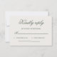 Complétez votre suite de papeterie de mariage avec cette élégante carte de réponse RSVP vert foncé, conçue avec une esthétique botanique intemporelle et une écriture calligraphique raffinée.