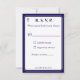 La conception de la face avant présente le format traditionnel pour une carte de réponse de mariage affichée dans une police bleu marine sur fond blanc. L'image d'une croix est affichée dans le coin supérieur. L'ensemble de la conception est encadré par une bordure élégante bleu marine et blanche.