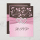 Cette carte de réponse florale rose clair et marron chocolat comporte un ruban imprimé rose et une paire de cœurs joints avec des bijoux faux diamants et paillettes roses imprimés qui correspondent à l'invitation de mariage présentée ci-dessous. Si vous avez besoin d'autres articles assortis, veuillez envoyer un e-mail à niteowlstudio@gmail.com.