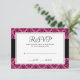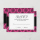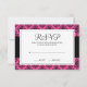 Cette élégante carte RSVP présente un motif damassé rose et noir élégant.