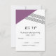 Carte RSVP de mariage géométrique moderne et tendance avec un triangle violet et un accent à rayures minces. Cette carte de réponse simple mais élégante est configurée pour être facilement customisée avec vos informations de mariage. Pour plus d'options de personnalisation, cliquez sur Customiser.