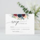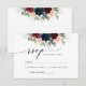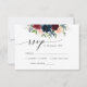 Carte de réponse de cérémonie de mariage en bordeaux et marine. Cette invitation de mariage élégante et stylée présente de superbes fleurs en bordeaux et marine peintes à la main à l'aquarelle. Trouvez des articles assortis dans la collection florale bordeaux et marine.