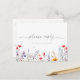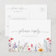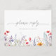Cette carte de réponse de choix de menu de fleur sauvage de couleur de printemps est parfaite pour un mariage moderne. Le design présente une écriture calligraphique élégante, qui lit mariage en gris atténué, fleurs sauvages violettes, violettes, bordeaux, rouges, roses, blush, jaunes peintes à l'aquarelle, feuilles vertes assemblées en motifs floraux sans couture.