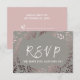 Cette élégante carte de demande de chanson en or rose et gris est parfaite pour un mariage classe. Le design présente un magnifique cadre feuillu rose saumon sur fond gris foncé et est associé à une police cursive étincelante. Créez votre liste d'invités de mariage et votre liste de chansons de piste de danse en même temps ! Cette carte de réponse de mariage demande commodément aux invités s'ils pourront assister à votre mariage, et quelle chanson les fera danser.