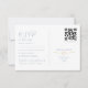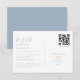 Cette chic carte de réponse de mariage blanche et bleu poussiéreux au design minimaliste apporte une touche contemporaine, avec un espace pour les noms des invités et les choix de menu. Les invités peuvent répondre facilement en utilisant le code QR ou choisir de la renvoyer de manière traditionnelle comme une carte postale timbrée. Idéal pour un mariage élégant et moderne qui équilibre la commodité avec la tradition intemporelle.