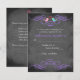 Cette carte de réponse de mariage à l'aspect amusant et fantaisiste gris et blanc avec tableau noir comporte un couple de tourtereaux dans des tons de rose, d'orange, de bleu et de vert avec un cœur rose vif entre eux. Il y a une paire de rouleaux violets ornés assortis avec un aspect de craie blanche fausse en arrière-plan. Il est présenté ici sur du papier basique pour correspondre à l'invitation de mariage présentée ci-dessous. Il est facilement personnalisable avec vos propres informations. ****VEUILLEZ noter que tout sera imprimé tel qu'il apparaît sur votre moniteur. Zazzle ne modifiera rien pour les fautes de frappe ou le désalignement, etc., et je ne le verrai pas une fois que vous l'aurez commandé. Si vous avez besoin d'aide pour la formulation, veuillez m'envoyer un e-mail AVANT de commander. Si vous avez besoin