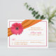 Le texte sur cette carte de réponse de mariage à la fleur de gerbera rose (gerbera rose) et ruban orange est entièrement personnalisable. Pour le modifier, utilisez l'option de personnalisation. Pour des modifications de texte plus importantes, telles que des changements de police, de couleur de police, de taille de police ou de placement de texte, utilisez l'option de personnalisation avancée. Remarque : au verso, cette carte de réponse comporte un espace pour que les invités notent leurs besoins alimentaires spéciaux ou allergies alimentaires.