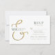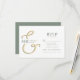 Carte de réponse de mariage simple, minimaliste, élégante et unique vert sauge avec calligraphie moderne, initiales de monogramme, noms et ampersand doré élégant tendance.