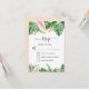 Cartes de réponse de mariage de printemps ou d'été à l'aquarelle avec feuilles de palmier vert tropical et fleurs florales roses blush - comprend une belle et élégante typographie de script avec des fleurs botaniques tropicales modernes et de la verdure pour la célébration spéciale du jour du mariage.