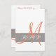 Utilisez cette carte de réponse élégante pour assortir l'invitation de mariage dans la boutique. Vous pouvez modifier le texte pour ajouter vos dires et le choix des repas. Carte de réponse de mariage grise, blanche et corail avec votre monogramme et vos noms dans un design simple mais élégant. ELKE CLARKE © pour Monogram Gallery. Affiché sur du papier blanc de base.