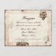 Conçue sur mesure par Audrey Jeanne Roberts, cette carte de réponse RSVP est parfaitement assortie à l'ensemble du même nom. Cette collection de faire-part de mariage est un ensemble de produits qui couvre l'ensemble de vos besoins de célébration de mariage. Le design présente des ornements de vieille imprimante antique sculptés et gravés dans l'antiquité. L'encre marron chocolat de ces ornements est placée sur un fond en « vélin » qui permet à un peu du design de transparaître. Il y a des volutes dessinées à la main en rose tendre, une écriture ancienne avec une belle écriture et un fond de parchemin peint à la main avec un traitement de bord encré. Parfait pour les invitations officielles ou les événements élégants. Il s'agit d'un design recto.