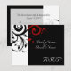 Carte de réponse pour accompagner notre invitation de mariage à tourbillon inversé rouge noir et blanc, avec un fond audacieux de feuilles en volute. Personnalisez en ligne avec vos détails de mariage.