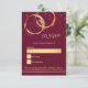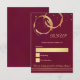 Carte de réponse élégante avec des taches de vin dorées et rose gold qui se croisent avec des confettis sur fond bordeaux. Le recto comporte une image de fond de texte séparée pour faciliter l'écriture de vos invités. Vous pouvez déplacer ou supprimer cette image selon vos besoins.