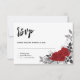 Cette carte de réponse RSVP au thème romantique à la rose rouge présente deux roses entrelacées avec un feuillage noir et gris. Le verso est un cadre noir sur fond rouge. Achetez les articles coordonnés pour assortir (vendus séparément) qui peuvent être trouvés dans notre collection 'Intertwined Romantic Red Roses'.