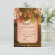 Carte de réponse avec un thème vinicole avec des raisins colorés et des roses roses sur un fond de tonneau de vin avec des guirlandes lumineuses. La collection comprend également une carte de réponse sans choix de menu.