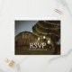 Carte de réponse de mariage avec grange rustique et lumières d'arbre. Articles assortis disponibles.